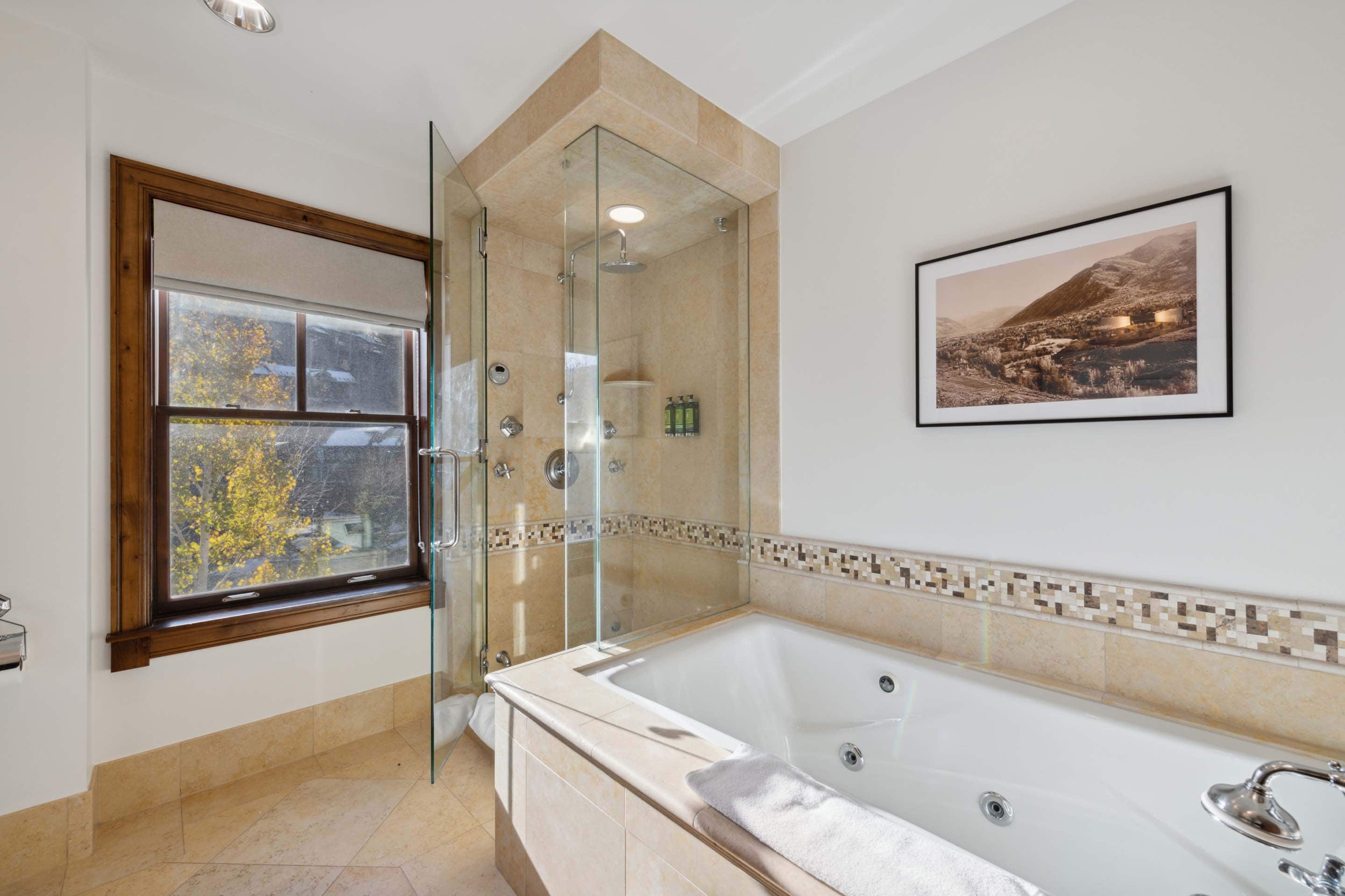 Guests will appreciate mountain views from the terrace and expansive, private hot tub, as well as the convenience of being an easy walk from the Silver Queen gondola and Aspen dining and shopping. Amenities such as an outdoor pool, two hot tubs, a fitness center, fire pits, an on-site equipment rental shop, valet service (vehicle and ski), a business center, and shuttle service are also available.
